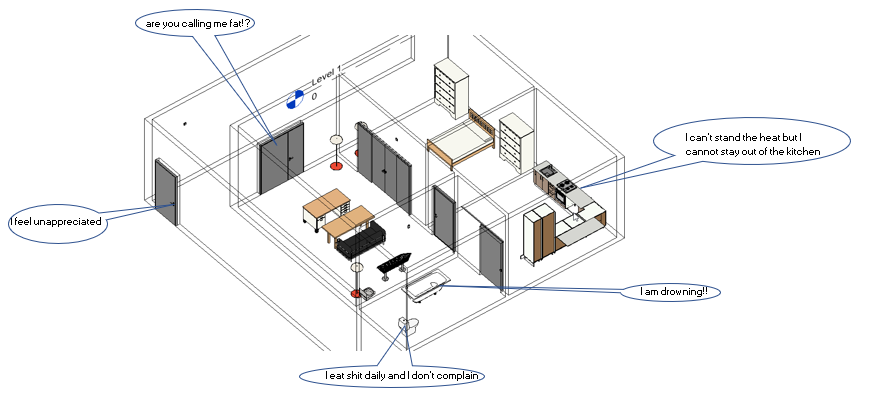 “I have the most unappreciated job in the world”, declares the made in Singapore door handles, “as I get pulled and pressed every day and don’t even get noticed by the owner”. “What are you complaining about?”, countered the branded Mayer inductive cooking stove. She added, “I am under extreme hot pressure before every meal time. And I cannot stay out of the kitchen even when I can’t stand the heat.” “I concur with her!”, exclaimed the Bosch self-cleaning matronly looking oven embedded with the latest IOT functions. The debate somehow ended with the statement made by the Grohe extravagant gold plated toilet bowl, “I eat shit every day and I don’t even murmur.”